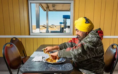Inside Akal Travel Center, a 24-hour truck stop on Wyoming’s high plains, the smells of sizzling garlic and earthy curry powder permeate the air....