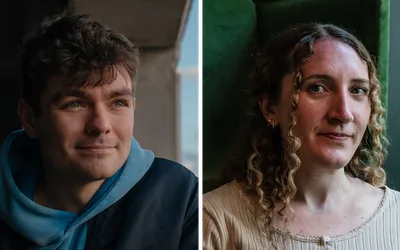 Izzy Johnson, left, and Jack Beatson are first-year students at Sterling College in Craftsbury Common, Vt. The college has announced that it will...