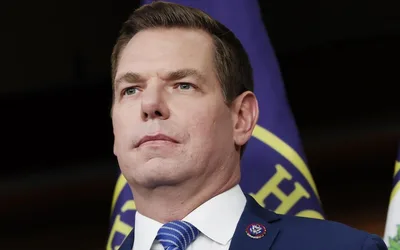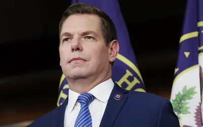 Rep. Eric Swalwell, D-Calif., speaks at a news conference at the U.S. Capitol on September 08, 2025. Anna Moneymaker/Getty Images hide caption...