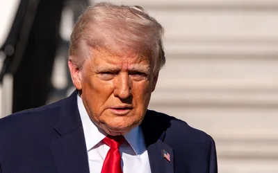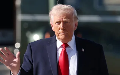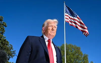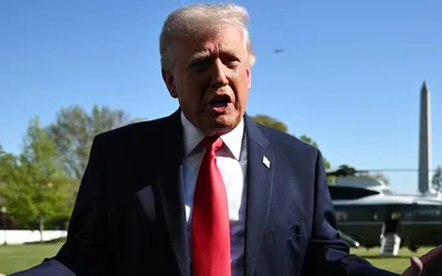 President Trump speaks with reporters before departing on Marine One from the South Lawn of the White House on April 11 in Washington. Alex...