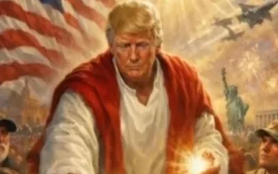The image showed President Trump in a white and red robe, commonly used in renderings of Jesus Christ and in scripture prophesying his return....